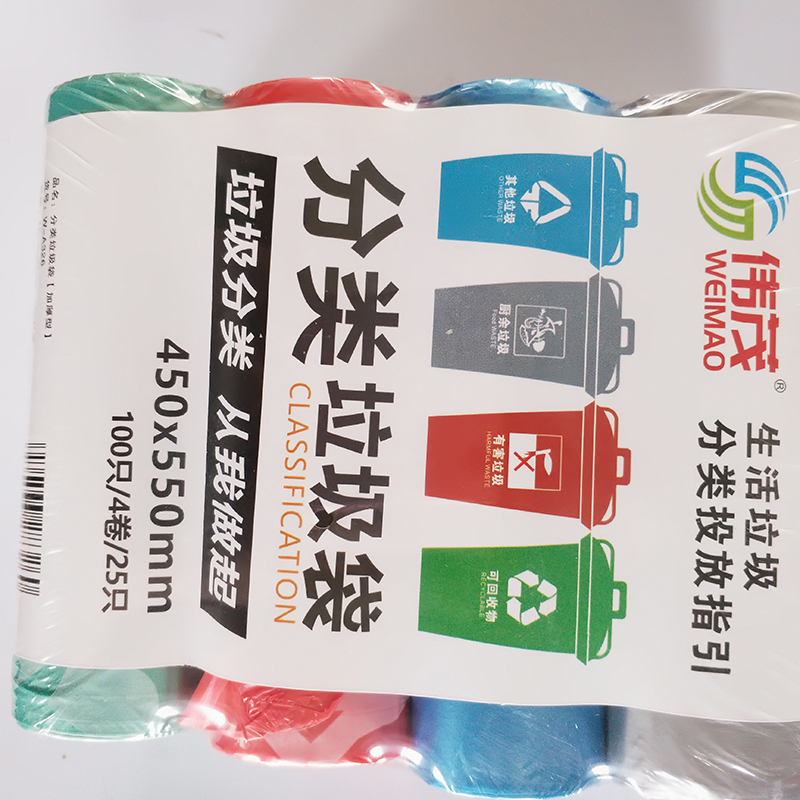 4连包彩色垃圾分类印刷垃圾袋